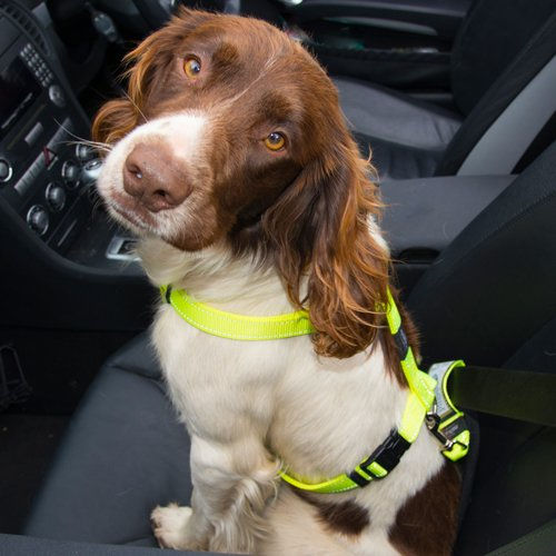 Safety: Prevents driver distractions and restrains dog to one position in the vehicle.
